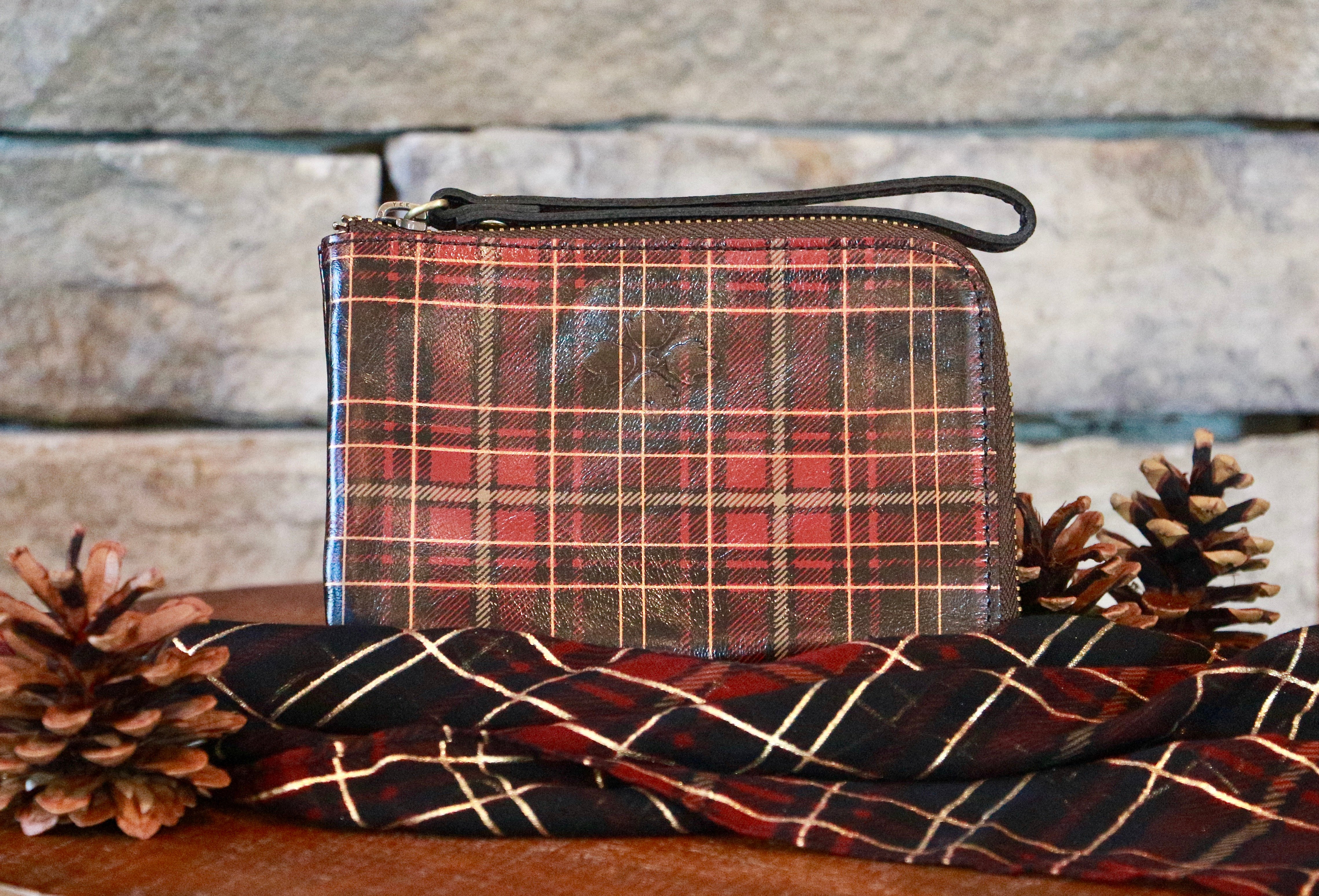 The Reala and Scarf Gift Set is available in Tooled Turquoise, Abstract Animal, Signature Map, Peruvian Painting, Red Tartan, and Heritage Multi colorways!