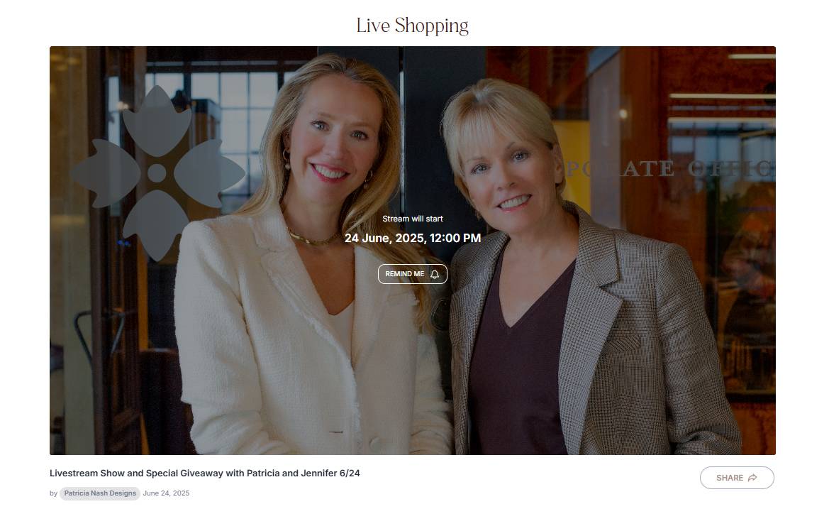You can join an event in progress, set up a reminder at REMIND ME (above image) and share the event with others by clicking SHARE at the bottom of the Live Shopping page.