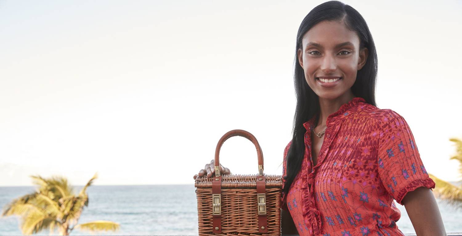 The catalog is a carefully curated set of beautifully crafted bags and accessories, and Patricia is especially excited to introduce you to her new line of stylish sunglasses, gorgeous new jewelry, expertly woven leather bags, and intricately crafted rattan and cotton silhouettes. You'll also find new accessories, including new tech accessories.