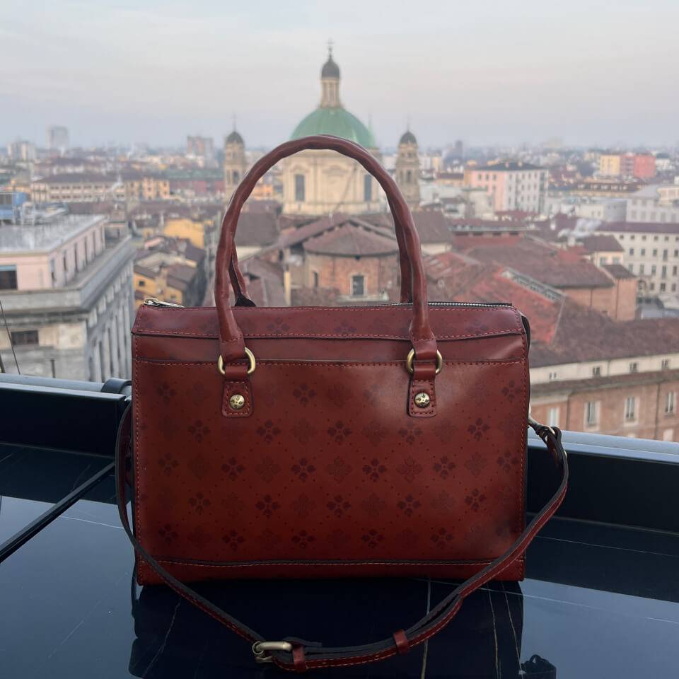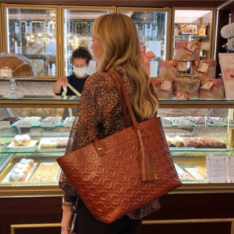 Patricia and Jennifer are always happy to return to Italy, and they traveled there in September of last year as well as February of this year to attend the Lineapelle in Milan. Most people familiar with the brand know that Italy holds a special place in Patricia’s heart and in the history of the company. As she was starting Patricia Nash Designs, she was in Italy when she sketched her signature floret grape leaf on a cocktail napkin. It became the brand logo. With Patricia’s deep knowledge of tanning methods using natural ingredients, such as the bark of a mimosa tree, as well as other special leather finishes, and her uniquely elegant prints, her leather creations incorporate the passion and traditions of authentic Italian leather artisanship.