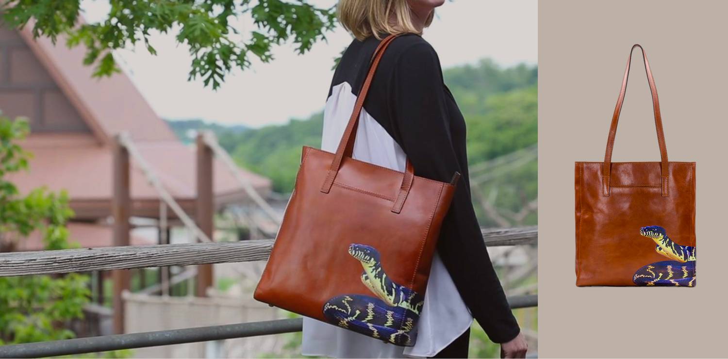 In collaboration with the Zoo, Patricia designed an exclusive tote to support the Zoo’s new Amphibian and Reptile Conservation (ARC) Center. Proceeds from the purchase of this bag save animals from extinction by funding research and conservation of endangered species worldwide. This limited-edition bag celebrates the beauty of the Boelen’s Python. One of the most remote and mysterious places on earth, New Guinea, is home to the secretive Boelen’s Python.