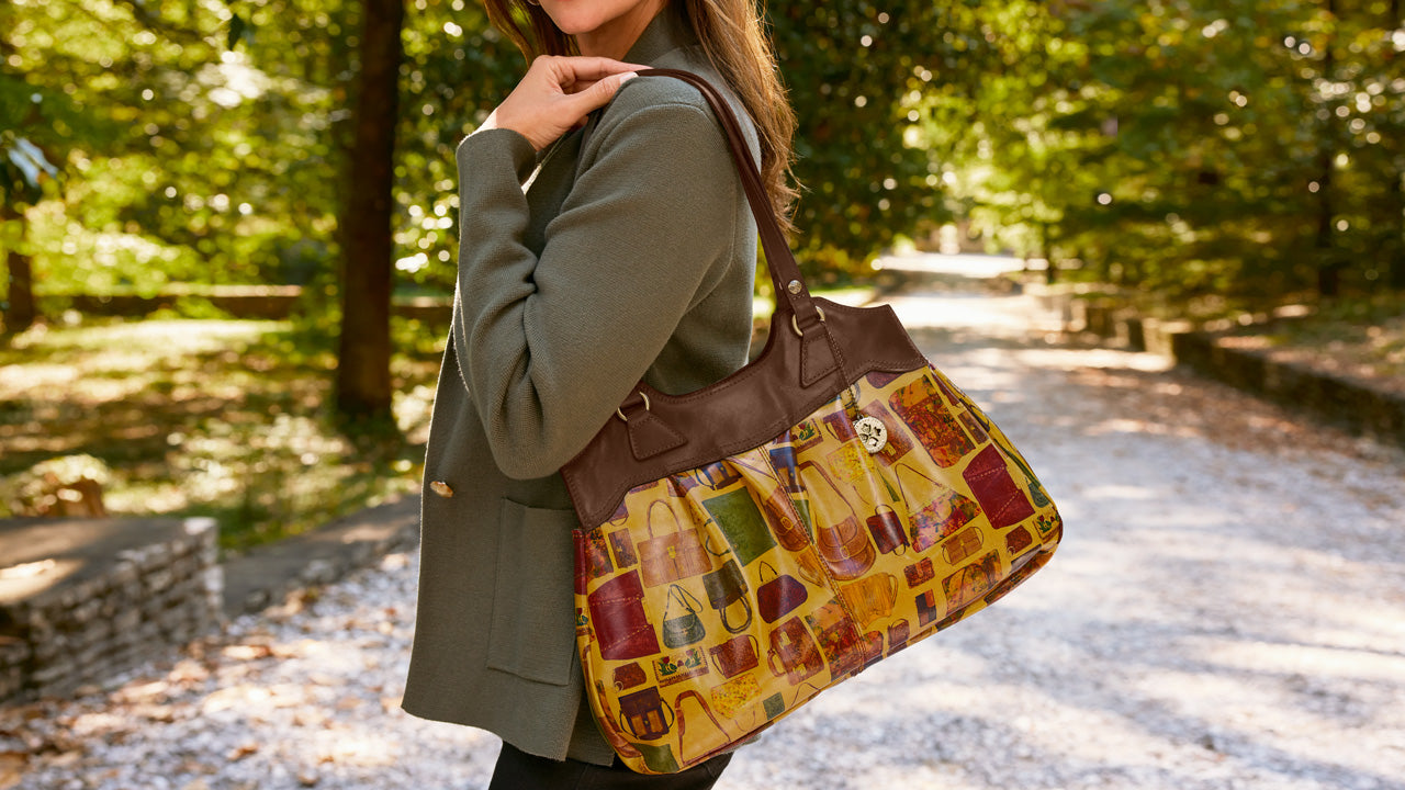 Current price: $149.00Original price: $199.00Color | Patricia's ClosetView Full DetailsCrafted from luxurious leather and featuring our enchanting Patricia's Closet print, this sleek and eye-catching handbag is a true statement piece. Standout style, paired with exclusive 15th anniversary medallions, the Verbania is a must-have for those who crave a bold, sophisticated touch.