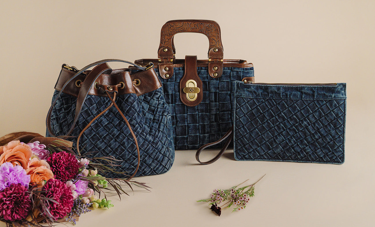 Current price: $299.00Color | DenimView Full DetailsIn Washed Woven Denim, the Sancia has eye-catching wood handles and supple leather trim. A true statement piece, it combines elegance and charm, bringing a touch of vintage glamour to your wardrobe. Carry it with confidence. It is effortless, chic, and always in style.