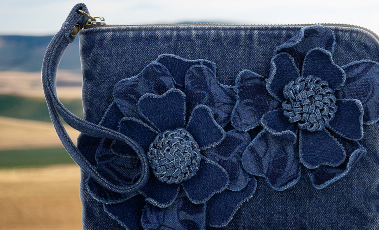 Shop handcrafted denim handbags and wristlets that pair effortlessly with any outfit, from casual to dressy.