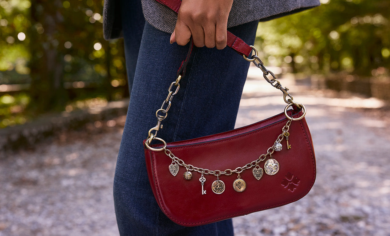 Color | OxbloodView Full DetailsChic meets functional in this mini crescent-shaped, appealing bag. Crafted in iconic Heritage leather, it features built-in card slots for effortless organization and a sleek silhouette that tucks perfectly under your arm. The handle includes a swivel clasp, allowing you to clip it onto larger bags, belt loops, or wherever your day takes you. Compact yet versatile, it’s the ultimate grab-and-go piece with just the right amount of edge.