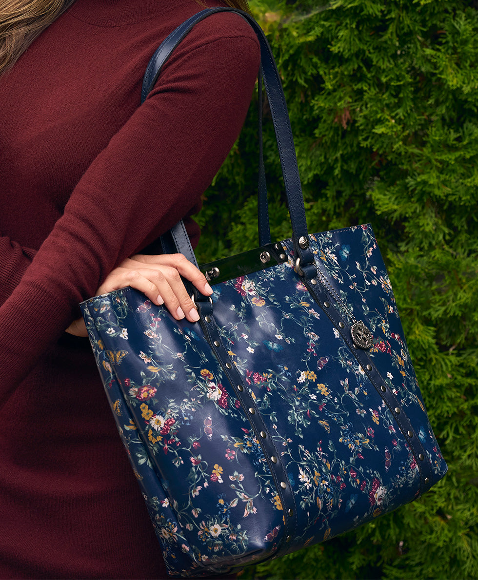 Benvenuto ToteButterfly GardensOriginal price: $299.00Current price: $199.00This is a carousel with one large image and navigation arrows below. Select the previous slide or next slide buttons to change the main image. Click on the main image to navigate to the the product detail page. Click on the "Quick Shop" button to open the quickshop modal.