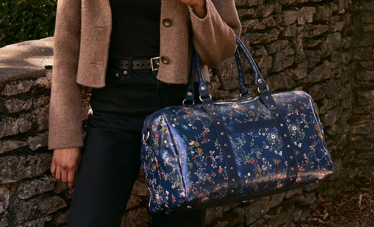 Current price: $329.00Color | Butterfly GardensView Full DetailsThe Milano Weekender Duffel Bag is the ultimate travel companion. Made from specialty patina coated linen canvas and featuring our gorgeous Butterfly Gardens print, this bag blends style with practicality. Its spacious interior easily holds all your essentials for road trips, overnight stays, or getaways by air. The thoughtful design features stud details, giving it a touch of sophistication that's perfect for both urban exploration and outdoor adventures. It's carry-on compliant and as durable as it is beautiful, ensuring you're ready for any adventure that comes your way.