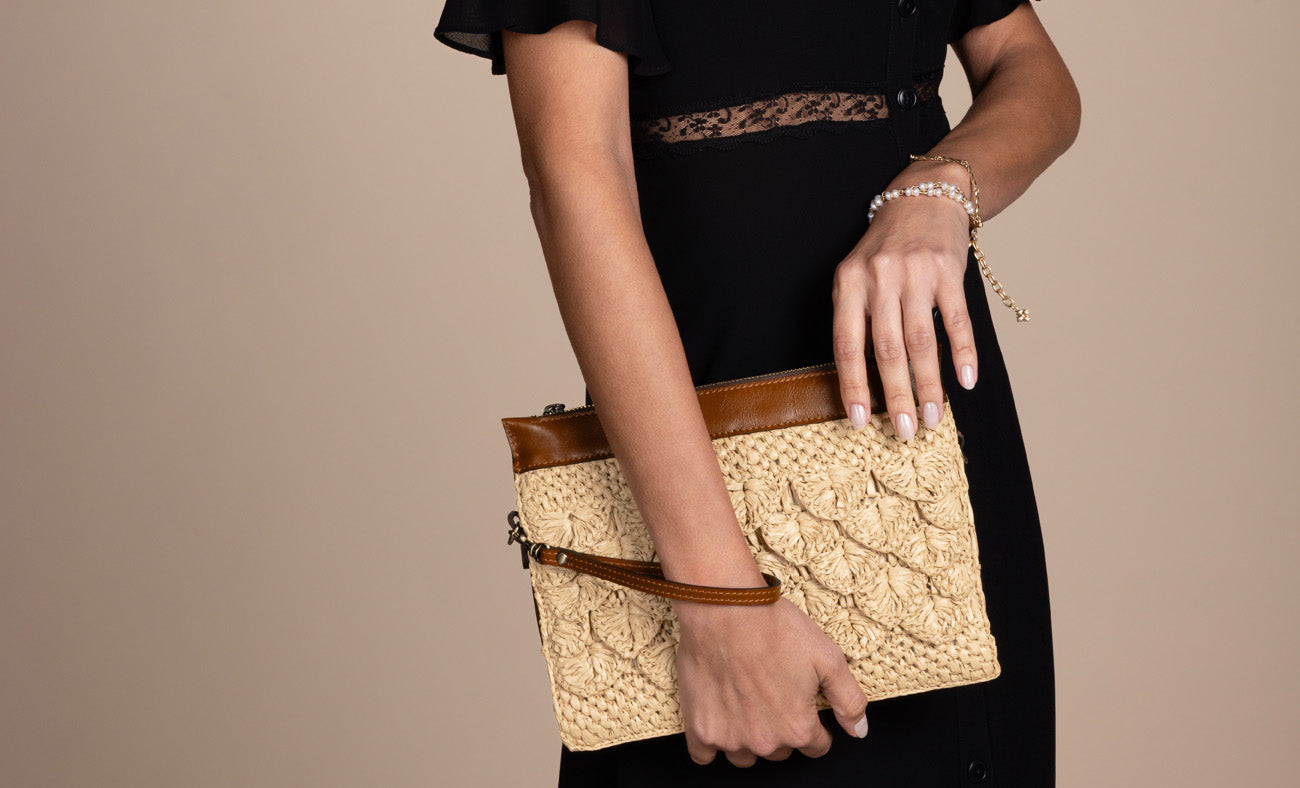 Current price: $199.00Color | NaturalView Full DetailsThis sleek and simple clutch is your new favorite plus-one. With an adjustable and detachable crossbody strap, interior and exterior pockets, and scalloped raffia style, the Yvette is the perfect piece to elevate any look.