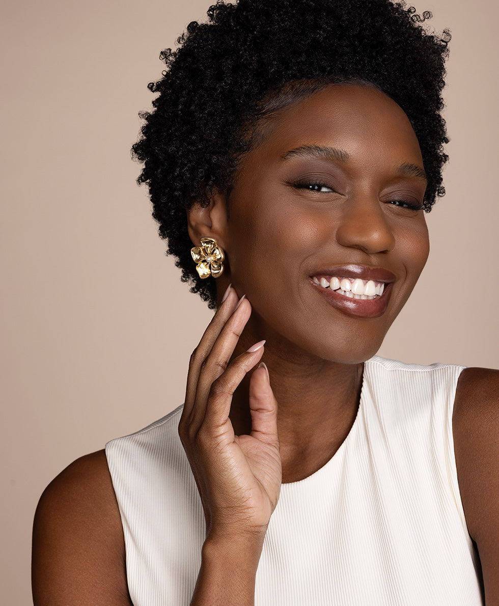 Current price: $29.00Color | Worn GoldView Full DetailsThese post earrings blend modern design with timeless elegance. Crafted from high-quality metal, the delicate floral detail catches light and eyes alike. The organic design offers depth and sophistication, making them perfect for both everyday wear and special occasions.