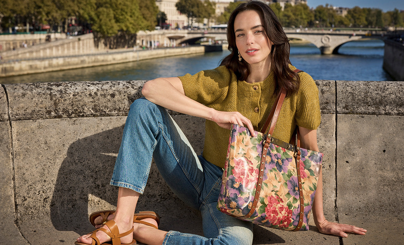 Current price: $199.00Color | French HydrangeasView Full DetailsThe Sandrine Crossbody blends vintage whimsy with modern ease. Its soft exterior is complemented by a smooth wooden handle for a touch of natural charm. Whether worn over the shoulder or carried by hand, the Sandrine adds a playful, feminine accent to any look, perfect for sunny strolls, picnics, or an afternoon café escape.