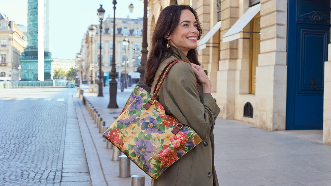 Current price: $149.00Color | French HydrangeasView Full DetailsCrafted from luxurious leather and featuring our enchanting French Hydrangeas print, this sleek and eye-catching handbag is a true statement piece. Standout style, paired with exclusive 15th anniversary medallions, the Verbania is a must-have for those who crave a bold, sophisticated touch.