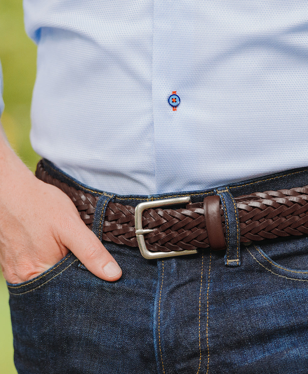 View Full DetailsThe belt is a timeless piece in men’s fashion, combining both form and function. Crafted in our braided full-grain leather, this Nash belt has a square buckle made of signature brushed brass hardware. It lends sophistication and refinement to any look from casual jeans to formal suits.