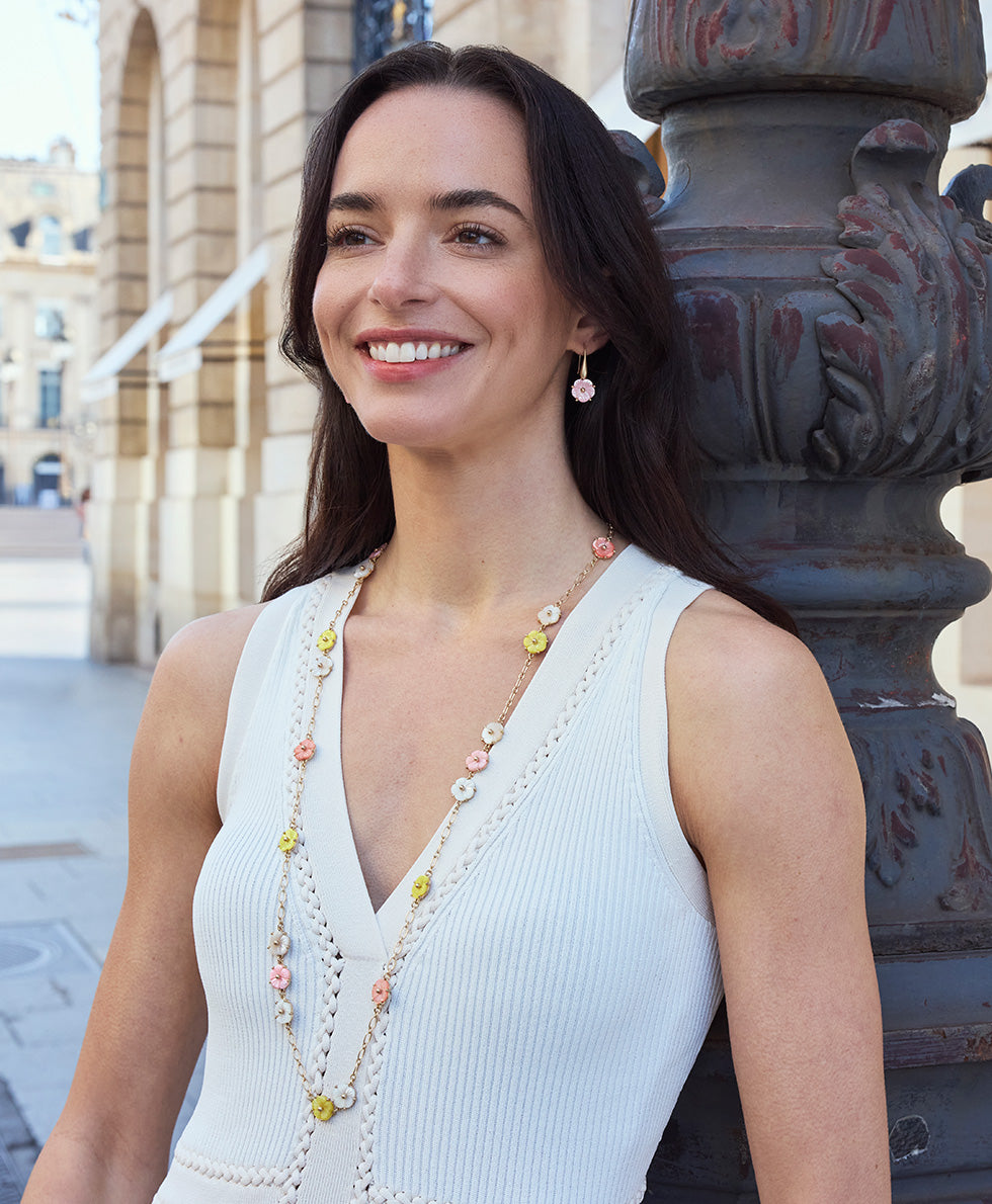 Current price: $69.00Color | Worn GoldView Full DetailsThis flower station necklace is the versatile favorite you've been looking for. Whether you prefer it short and layered or long and elegant, this necklace brings soft color to any outfit.