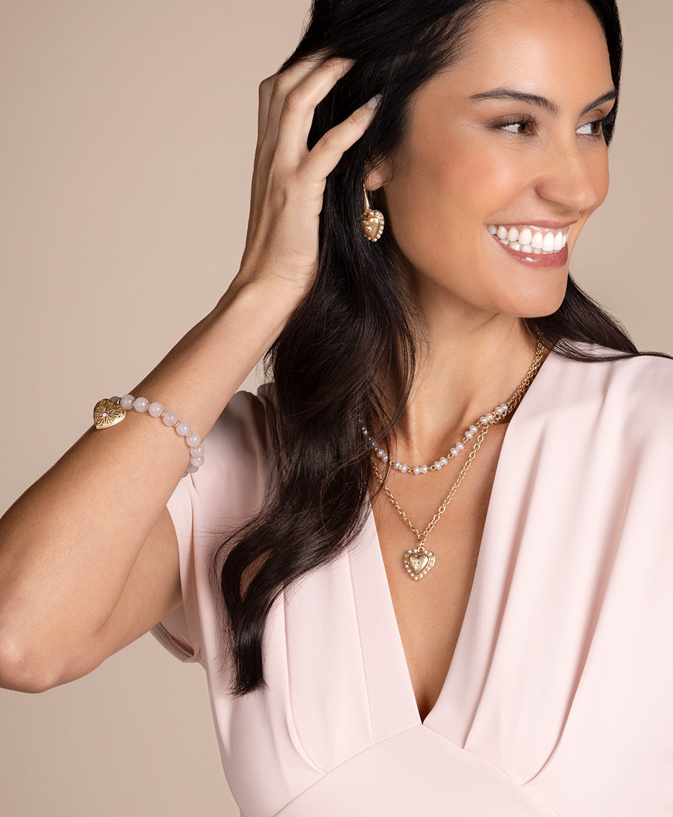 Current price: $39.00Color | Worn GoldView Full DetailsAdd a splash of serene color to your everyday look with this beaded stretch bracelet. Designed with lovely blush beads that catch the light just right, this bracelet blends simplicity with effortless charm. Its stretchy, slip-on design offers a comfortable fit for most wrist sizes, making it as practical as it is stylish.
