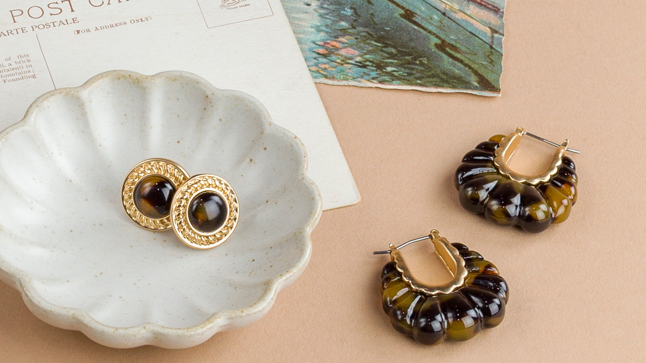 Current price: $39.00Color | Egyptian GoldView Full DetailsA stunning blend of modern style and natural elegance and featuring a sleek round shape, these earrings are enhanced with a luxurious leather inset in our new Oxblood Flower Spot print. Finished with a pretty pearl-like glass bead, these earrings are lightweight and comfortable, perfect for elevating both everyday and special occasion outfits.