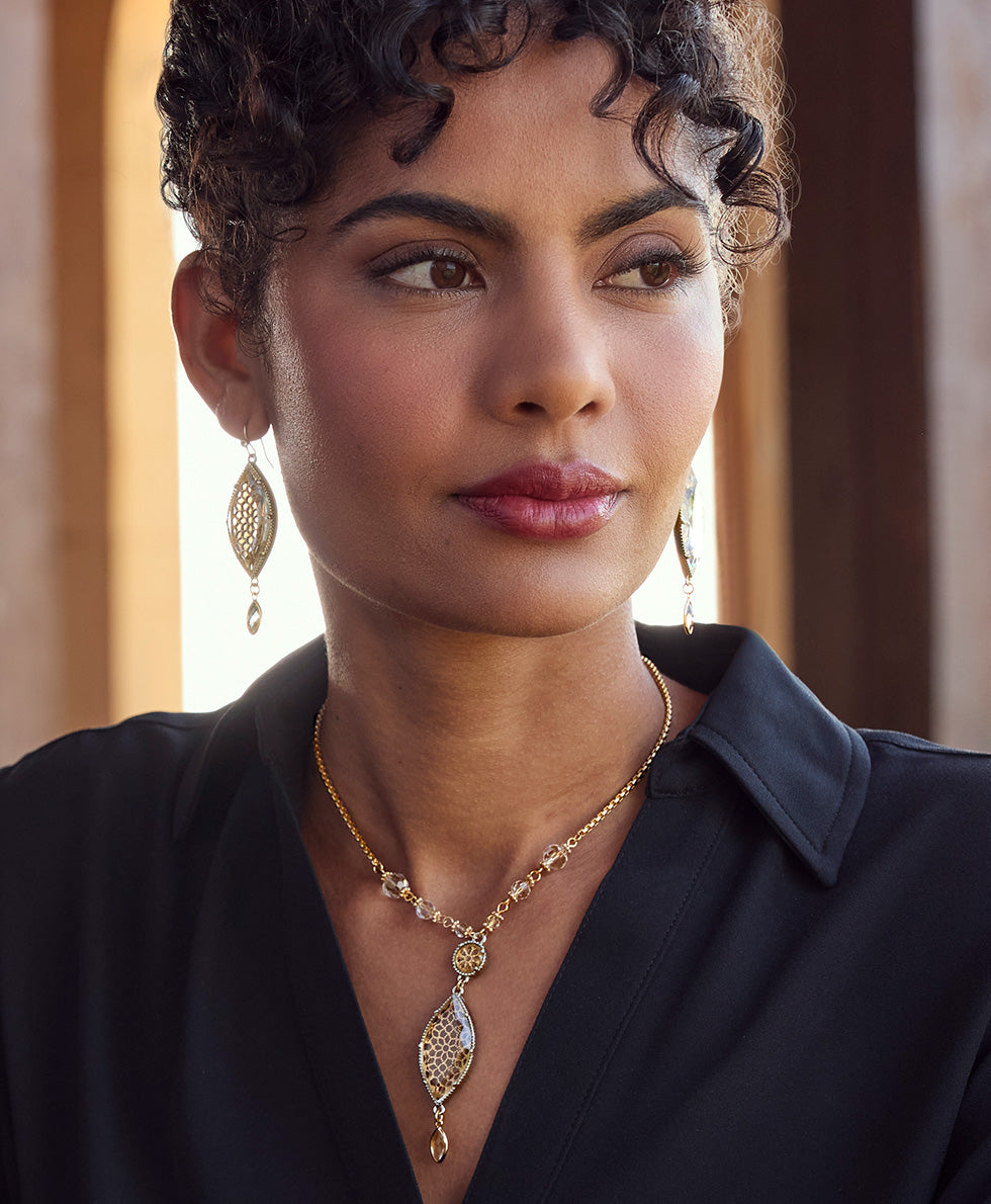 Eye-catching and elegant, this necklace features a large marquise pendant with a filigree center. A just-right touch to add color to any outfit, from casual to dressy, it features a unique sliding closure that allows you to adjust its length.