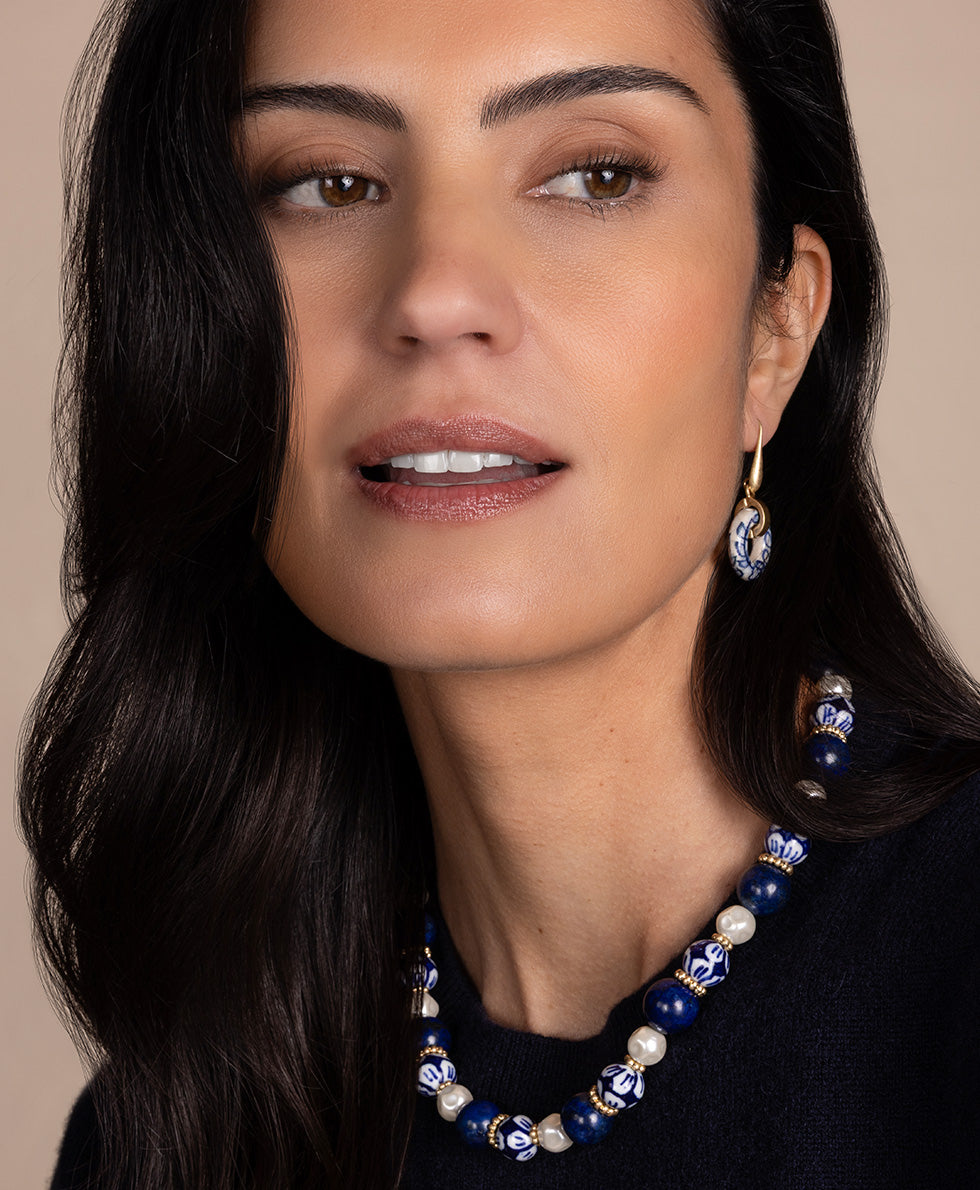 Current price: $59.00Color | Worn GoldView Full DetailsThis modular two-strand necklace, featuring vibrant spruce beads, is the perfect combination of modern design and bold elegance. The two strands are carefully arranged to create a dynamic, layered look, with the added touch of striking glass pearl beads.