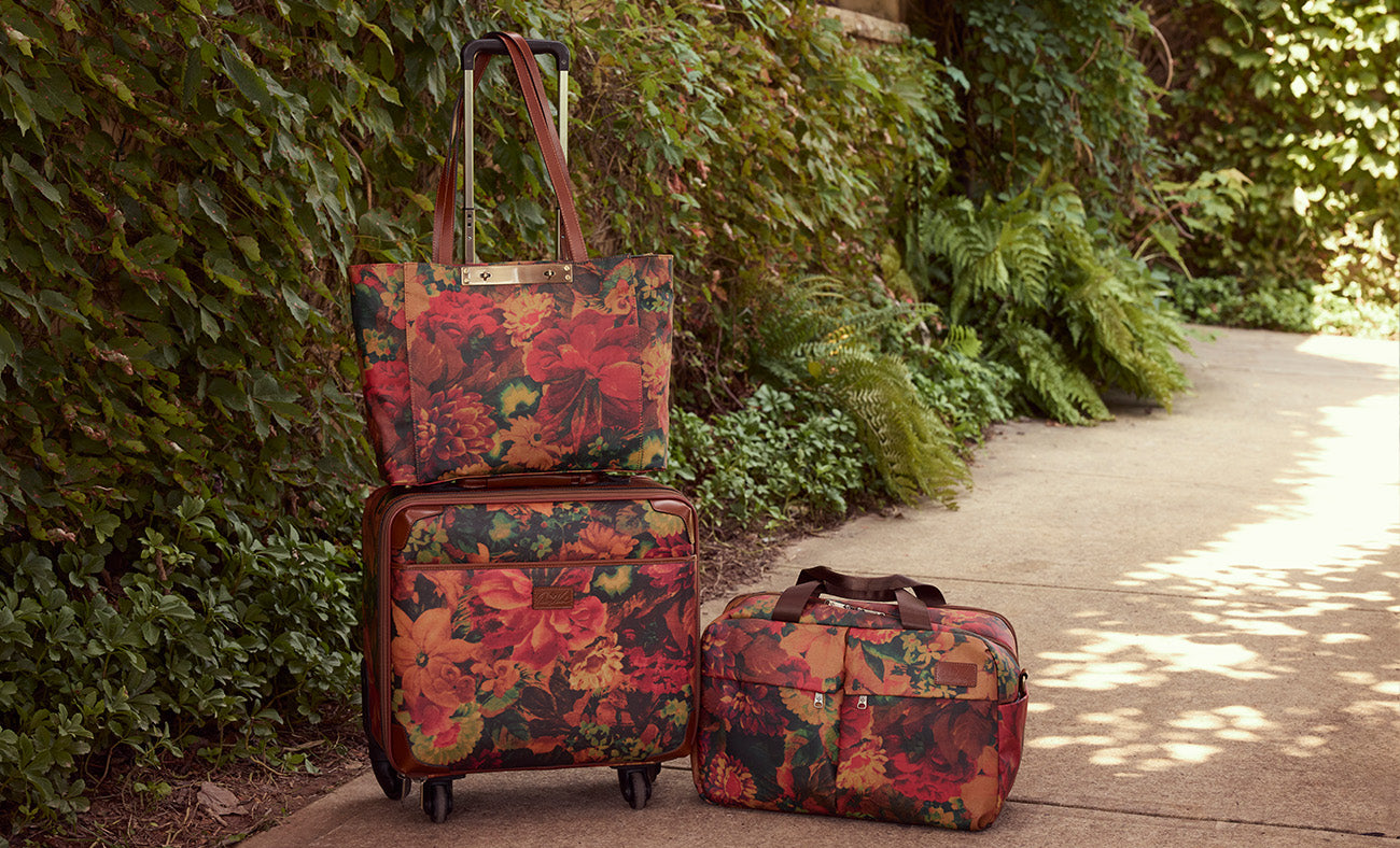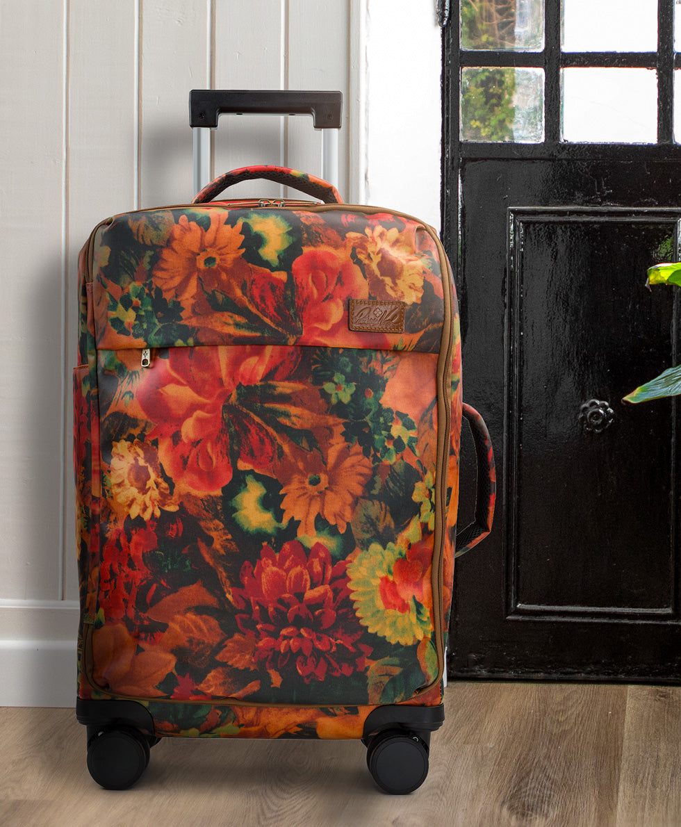 Current price: $249.00Color | Multi PrintView Full DetailsYour new favorite travel companion has arrived. The Mattia, featured in our striking new Tuscan Fields print, blends charm, function, and effortless style. With its unique shape and twisted rope leather handles, it brings a touch of nautical elegance to every journey. Designed with outstanding organization in mind, it includes 360-degree, multi-directional 4-wheel spinners for smooth and easy maneuvering, along with convenient interior and exterior pockets to keep everything in its place. The retractable metal telescopic handle tucks away neatly when not in use, while the twin twisted rope leather top handles offer a comfortable, stylish carrying option. A built-in panel on the back lets you attach it securely to the handle of another bag, making airport transitions seamless. Carry-on compliant, it is compact enough to stash under most airline seats making the Mattia the perfect companion for everything from quick getaways to weekend road trips.