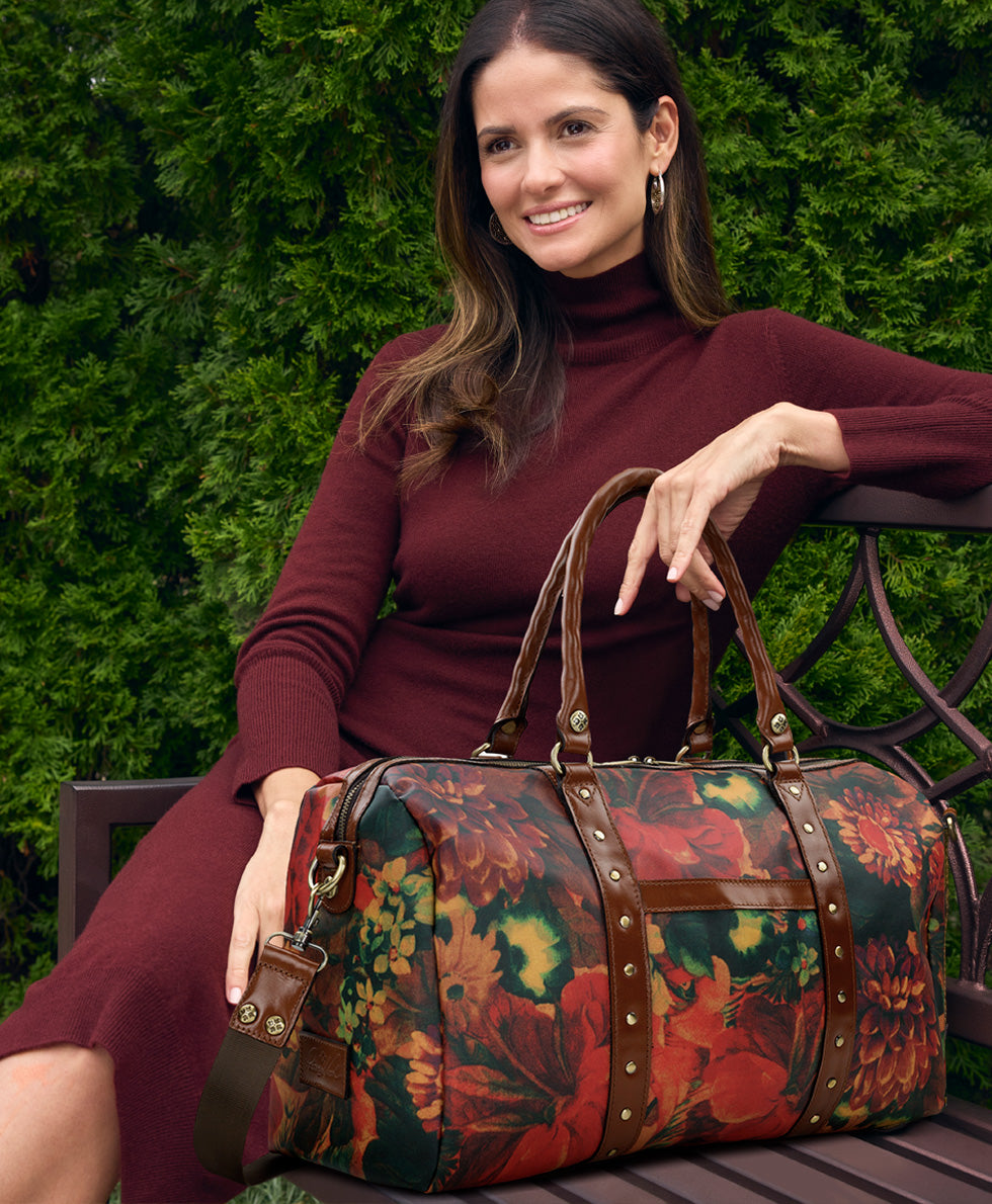 Current price: $329.00Color | Butterfly GardensView Full DetailsThe Milano Weekender Duffel Bag is the ultimate travel companion. Made from specialty patina coated linen canvas and featuring our gorgeous Butterfly Gardens print, this bag blends style with practicality. Its spacious interior easily holds all your essentials for road trips, overnight stays, or getaways by air. The thoughtful design features stud details, giving it a touch of sophistication that's perfect for both urban exploration and outdoor adventures. It's carry-on compliant and as durable as it is beautiful, ensuring you're ready for any adventure that comes your way.