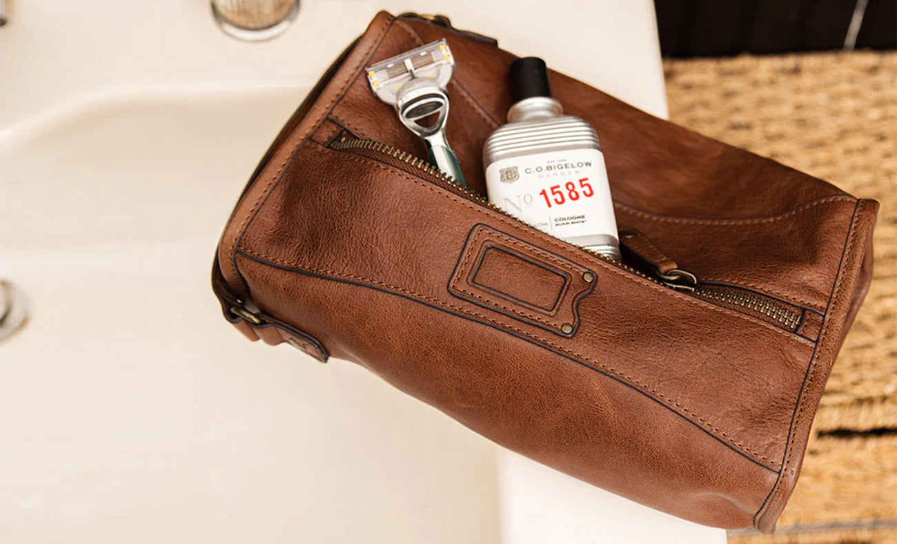 Current price: $138.00Color | WhiskeyA practical and beautifully designed travel case is the perfect way to organize your toiletries on the go. Meticulously crafted from hand-stained leather, this piece combines timeless style with everyday function. The structured interior features a clever wire frame that holds its shape and stays open when needed—just use the pull tabs for easy access. Finished with a secure top zipper, it keeps your essentials safe wherever you travel.