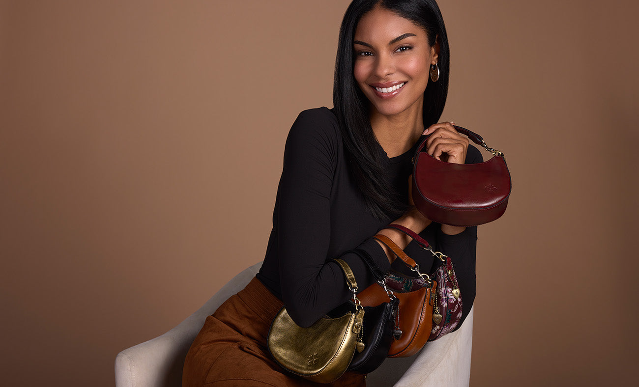 Color | OxbloodChic meets functional in this mini crescent-shaped, appealing bag. Crafted in iconic Heritage leather, it features built-in card slots for effortless organization and a sleek silhouette that tucks perfectly under your arm. The handle includes a swivel clasp, allowing you to clip it onto larger bags, belt loops, or wherever your day takes you. Compact yet versatile, it’s the ultimate grab-and-go piece with just the right amount of edge.