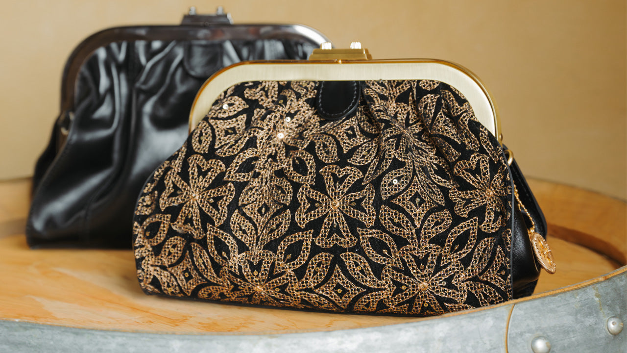 Current price: $149.00Color | BlackThis frame crossbody has an appealing profile made even more beautiful in Rico Embellished Velvet. Featuring a uniquely shaped kiss-lock closure, this elegant silhouette effortlessly complements everything from casual jeans to sophisticated outfits. Designed with versatility in mind, it includes two removable straps: a chain top handle for a touch of bling and an adjustable crossbody strap for hands-free convenience. As one of Patricia’s newest frame designs, the Evangeline is sure to elevate any look with its timeless beauty.