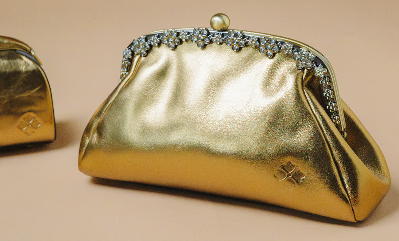 Current price: $169.00Color | Antique GoldPatricia's frame bags are beloved, and the Pilzone is a standout new addition. Crafted in luxe leather, it features a unique clip-over push-latch closure for both style and security. Unsnap the strap to carry it as a clutch. With its timeless design and impeccable craftsmanship, the Pilzone is stunning, a must-have for any fashion enthusiast.