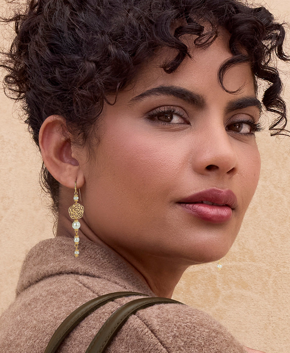 Current price: $24.00Original price: $32.0025% Off *Price as markedColor | Egpytian GoldWear these pretty earrings that bring movement, texture, and personality to your look with all the charm of the Aegean seaside. Featuring a cascade of various beads, and a disc with a bloom, these earrings dangle elegantly from the ear, creating eye-catching motion with every step.