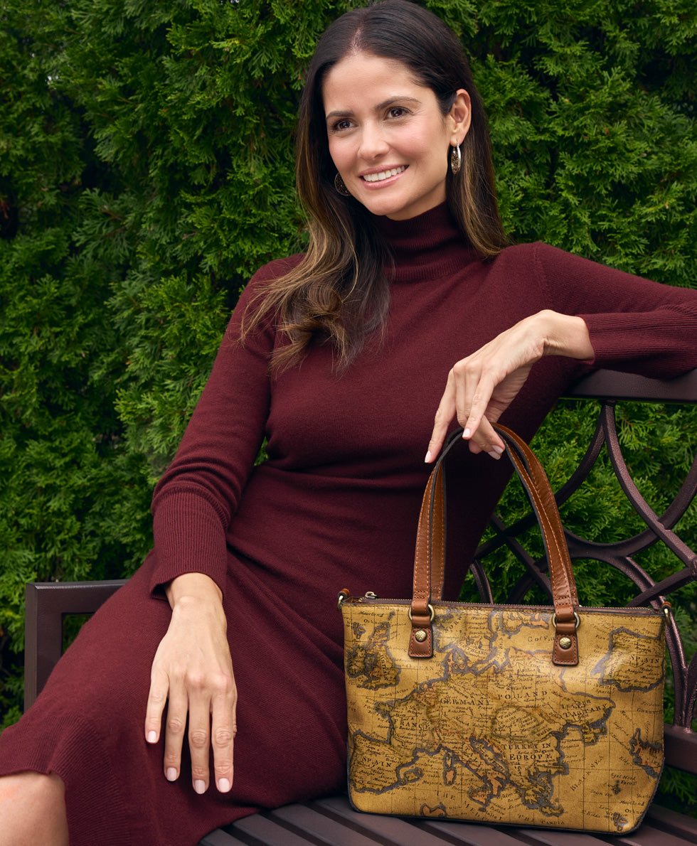 Current price: $199.00Color | Patricia's ClosetView Full DetailsFeminine and practical, the Napoli Satchel is the everyday bag you need. Its softly curved silhouette feels both inviting and timeless, while it's ideally sized interior keeps all your essentials close at hand. Crafted in iconic Patricia's Closet print and featuring our 15th Anniversary medallions, this bag adds a touch of warmth and charm to any look. Whether you're strolling through a farmers’ market, heading to a meeting, or enjoying an evening out, the Napoli Satchel brings elegance to every moment.