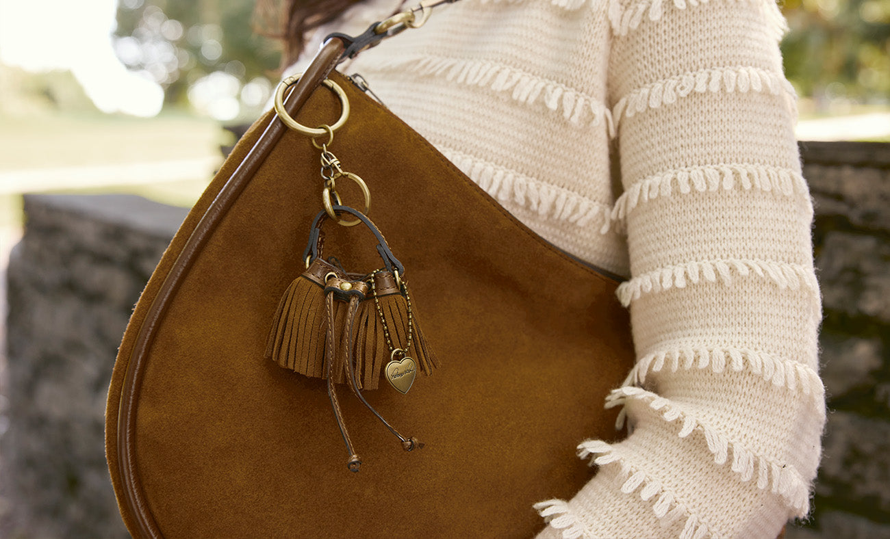 Current price: $49.00Color | CognacView Full DetailsThis tiny Elisa has all the style, movement, and texture as its namesake, but in the form of an adorable bag charm. Carry earbuds, coins, and more with the lightweight charm you’ll never forget.
