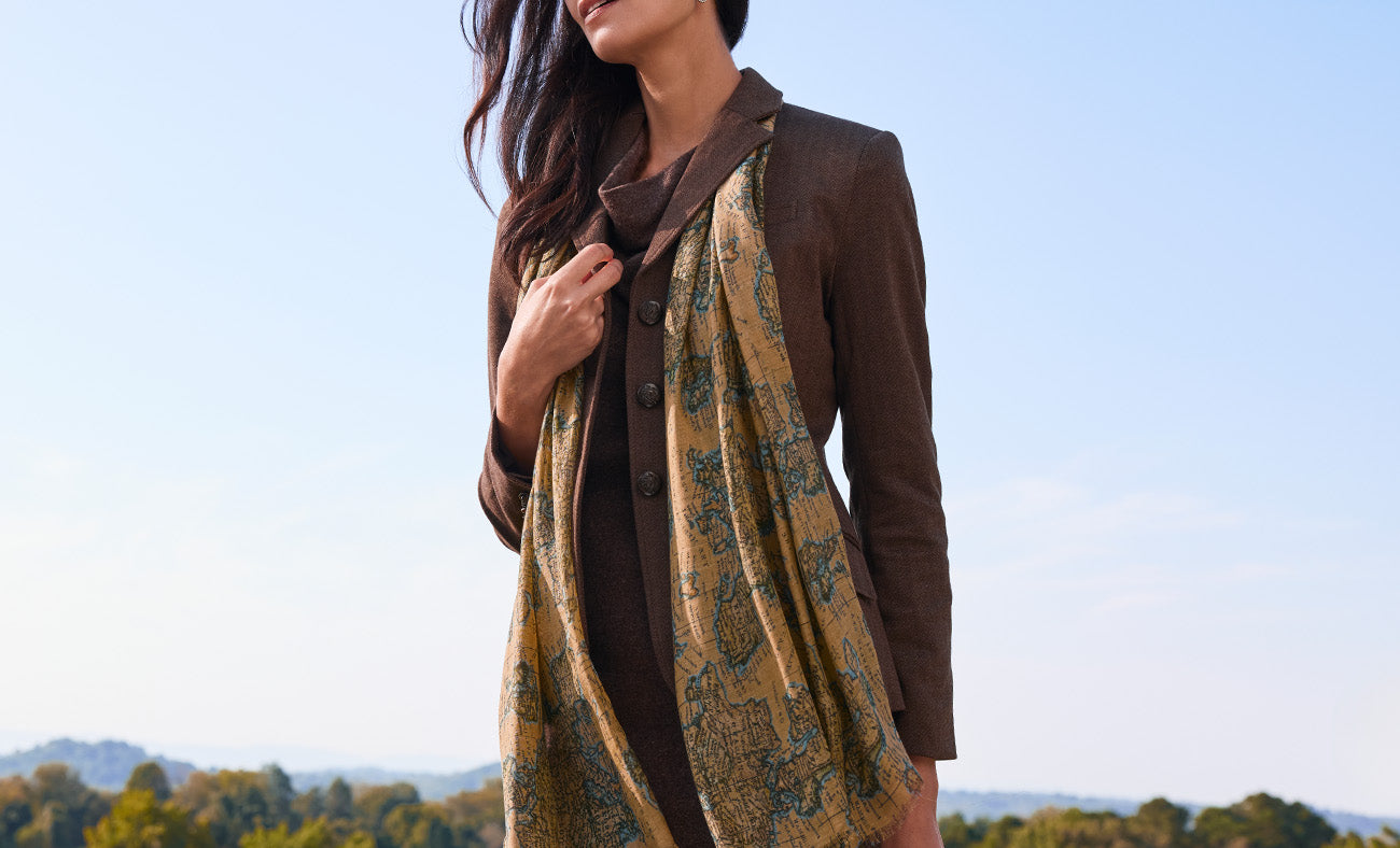 Add a special finishing touch to your outfit with this lightweight scarf. In the gorgeous European Map print, it adds a touch of sophistication to any outfit from casual to professional.
