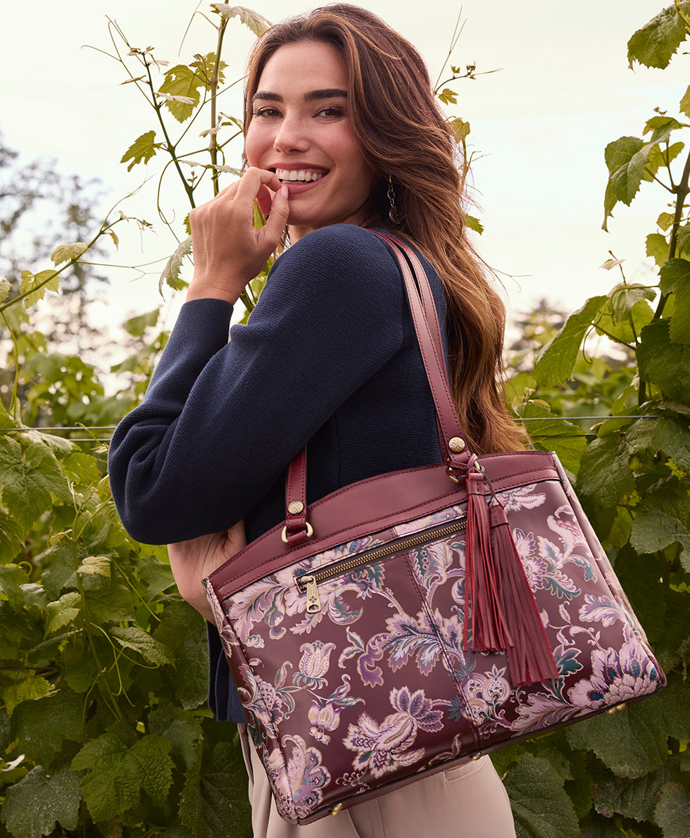 Current price: $199.00Color | Patricia's ClosetView Full DetailsThe Benvenuto Tote is the ultimate blend of practicality and signature style. With its bold, spacious design, it takes you from busy office days to weekend getaways and evenings on the town. The simple yet sophisticated design features easy over-the-shoulder handles for comfort, stud details that add a touch of edge, and a secure double twist-lock closure to keep your belongings safe. Complimented by our vibrant Patricia's Closet print on supple leather and 15th anniversary medallions, the Benvenuto is a timeless tote you'll love for years to come.