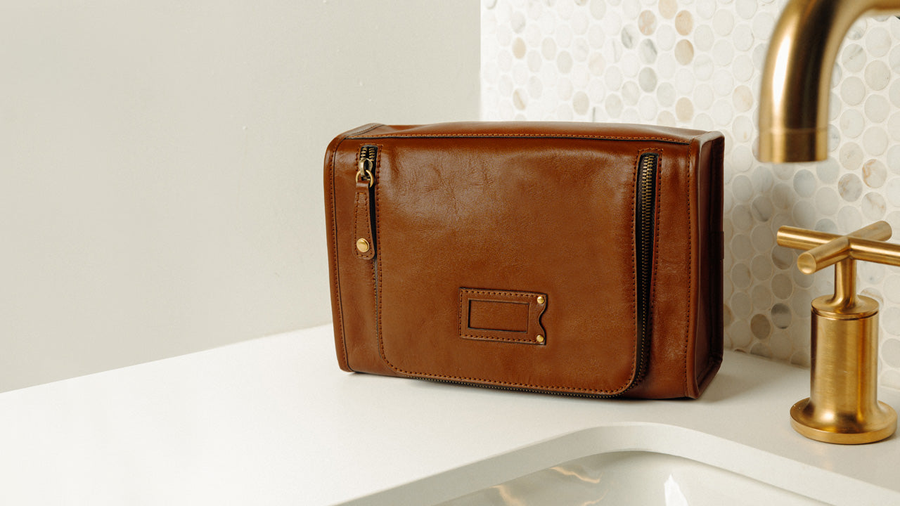 Current price: $138.00Color | WhiskeyView Full DetailsA practical and beautifully designed travel case is the perfect way to organize your toiletries on the go. Meticulously crafted from hand-stained leather, this piece combines timeless style with everyday function. The structured interior features a clever wire frame that holds its shape and stays open when needed—just use the pull tabs for easy access. Finished with a secure top zipper, it keeps your essentials safe wherever you travel.