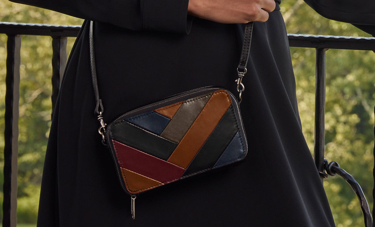 Current price: $89.00Color | BlackView Full DetailsElevate your style with this elegant wristlet, crafted in full-grain leather and finished with a playful tassel. The rich texture and bold Retro Colorblock design make it a standout accessory for any occasion, whether you're dressing up or keeping it casual. Compact, chic, and versatile, it's the perfect grab-and-go piece.