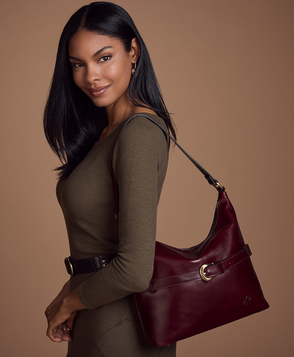 The Elini Hobo, crafted in iconic Vintage Distressed Leather, is Patricia's newest hobo bag. Convenient and sophisticated, this bag has a slouchy shape with an eye-catching belt and buckle that can be used to tighten and loosen the profile. The Elini is just the way to make a style statement.