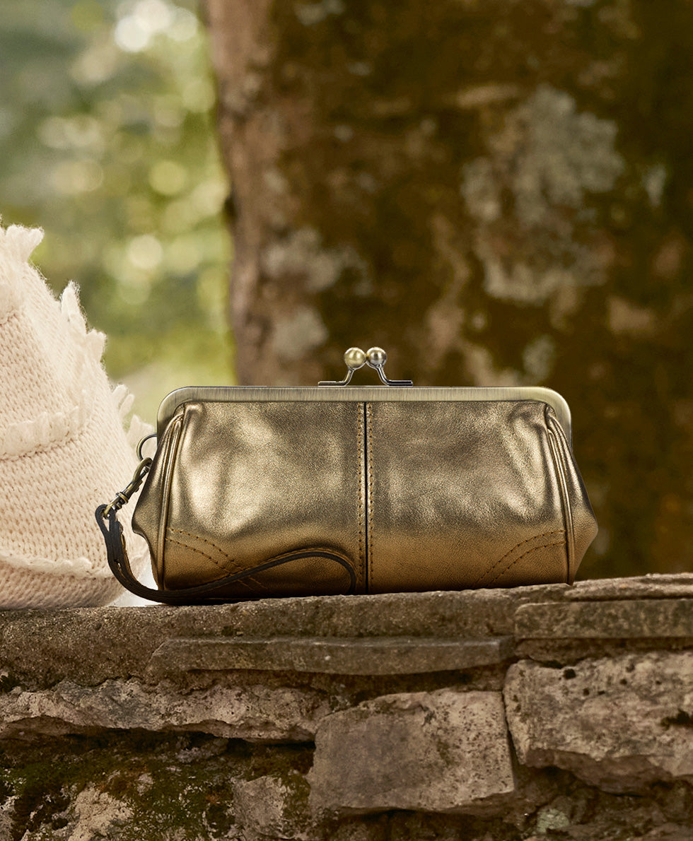 Current price: $79.00Color | Antique GoldView Full DetailsThe Renna Wristlet brings a playful, dainty twist to our iconic frame bag design. With built-in card slots and a sleek silhouette, it's the perfect blend of style and function. Whether you're running errands or heading to an event, the Renna keeps your essentials secure while elevating your look with timeless sophistication.