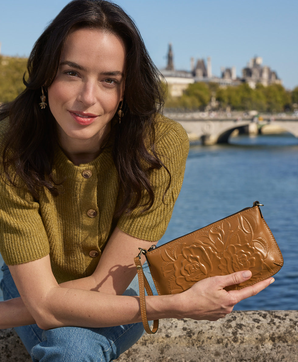 Current price: $99.00Color | Light TanView Full DetailsThe Laurina Wristlet Crossbody is handcrafted in rich vintage rose tooled leather, offering timeless style and everyday function. Designed with artisan details, this elegant bag can be carried hands-free or as a wristlet, perfect for your phone, keys, and other necessities, it’s a compact, stylish essential for day-to-night wear.