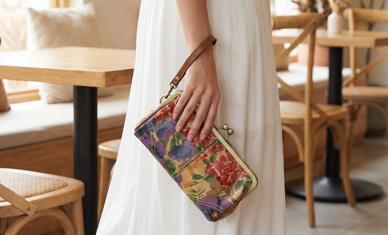 Current price: $79.00Color | French HydrangeasView Full DetailsThe Renna Wristlet brings a playful, dainty twist to our iconic frame bag design. With built-in card slots and a sleek silhouette, it's the perfect blend of style and function. Whether you're running errands or heading to an event, the Renna keeps your essentials secure while elevating your look with timeless sophistication.