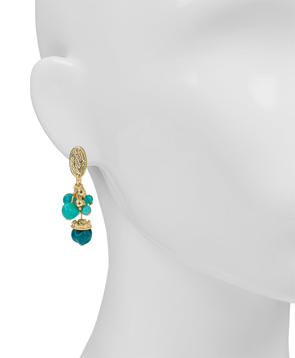 Add a splash of vibrant charm to your everyday style with these multi-bead post earrings. Designed with a playful mix of colorful teal beads, they bring a lively, eye-catching touch while staying lightweight and easy to wear. The secure post-back design ensures a comfortable fit, making them perfect for all-day wear, from morning coffee runs to evening plans.